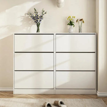 Naples Shoe Cabinet is a super thin and stylish shoe cabinet, which features 3 big flip drawers providing enough space for storing various shoes such as high heels, boots, sneakers, and slippers.